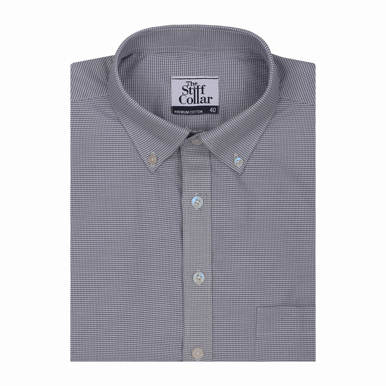 Carbon Black Houndstooth Button Down 2 Ply Cotton Shirt