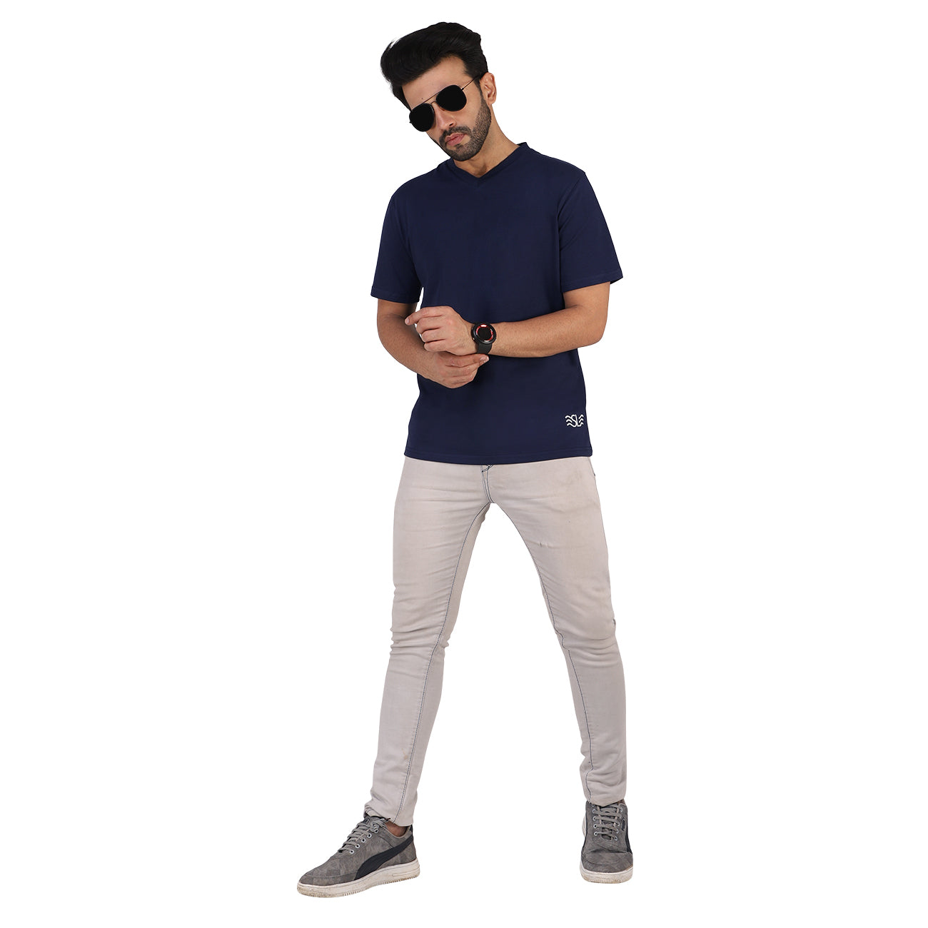 Shore Leave Midnight Navy V-Neck Premium Cotton T-shirt
