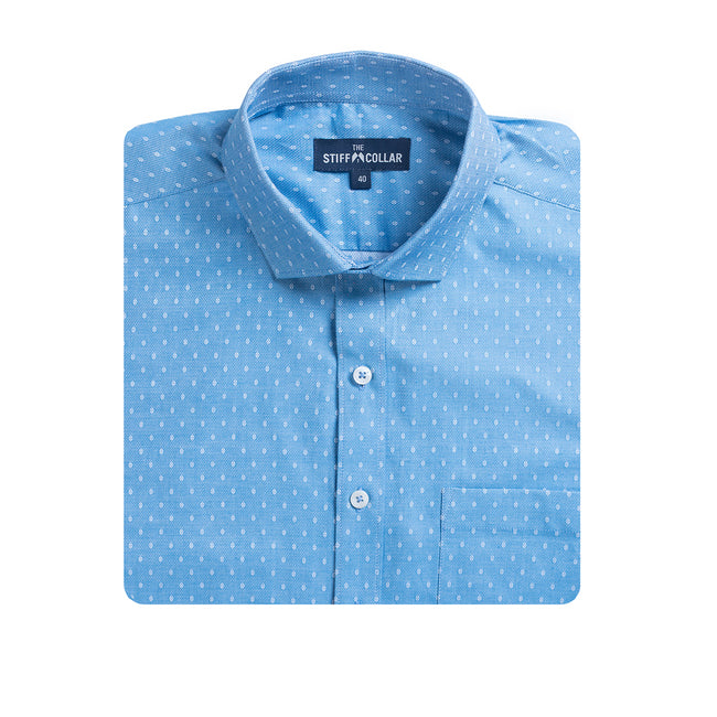 Ocean Blue Dobby Regular Fit Cotton Shirt